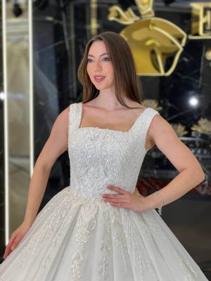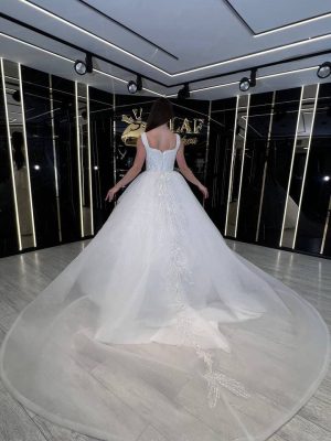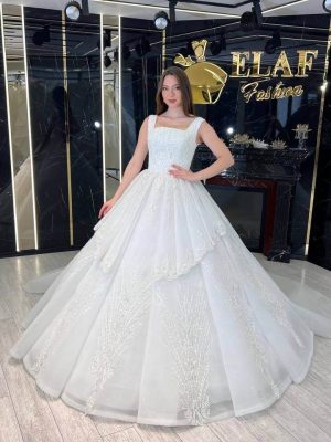 .Timeless Elegance… A wedding gown that combines classic charm with modern sophistication